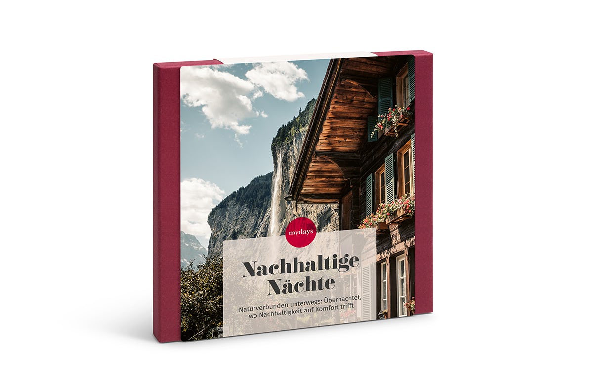 Die Geschenkbox Nachhaltige Nächte sichert zukunftsorientierten Urlaub für alle, denen die Welt am Herzen liegt. Koffer packen und 2 Nächte unbeschwert Kurzurlaub in einer handverlesenen Unterkunft genießen. Kriterien wie Ökostrom, regionale Lebensmittel, Wassereinsparungen und E-Ladesäulen wurden bei der Vorauswahl der Hotels mitberücksichtigt.