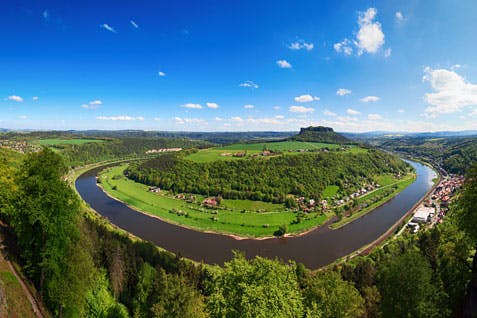 Elbe entlang, nach Bad Schandau. Dabei siehst Du schon das wunderschöne Elbtal mit seinen Sandsteinmassiven, dem geschwungenen Flussverlauf um die Festung Königstein und den weltbekannten Blick auf die Bastei.