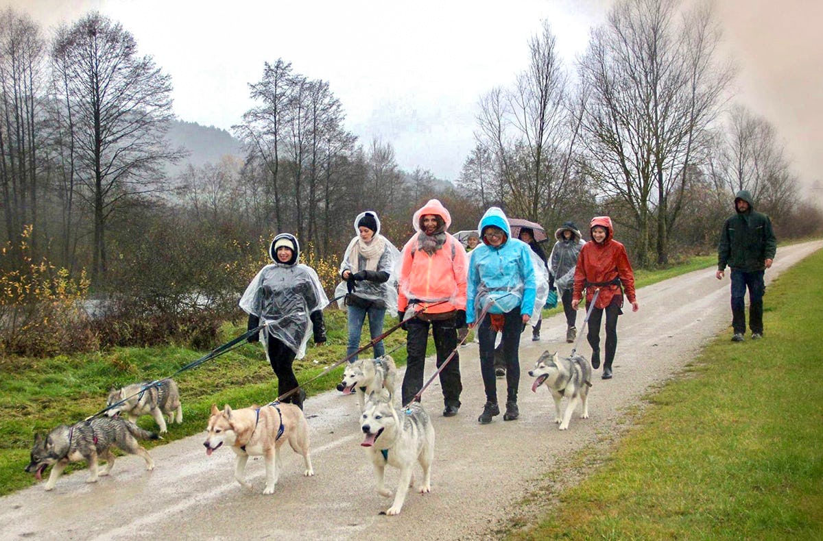 Bei der großen Wanderrunde bist Du anschließend über eine Stunde mit den Huskys unterwegs. Das Huskytrekking führt Dich zu einsamen Lichtungen im dichten Wald, über ausgedehnte Wiesen und zu herrlichen Orten, an denen die Zivilisation ganz schnell in Vergessenheit gerät. Den Weg weisen Dir die eifrig vorauslaufenden Hunde, die sich immer wieder versichern, ob auch alle Wanderer mitkommen. Du steuerst wieder auf die Ranch zu? Hier erwartet Dich zum Abschluss noch einen kleinen Snack mit Getränk, mit der Du Deine Reserven wieder auffüllst. Erlebe das unvergessliche Huskytrekking im Altmühltal.