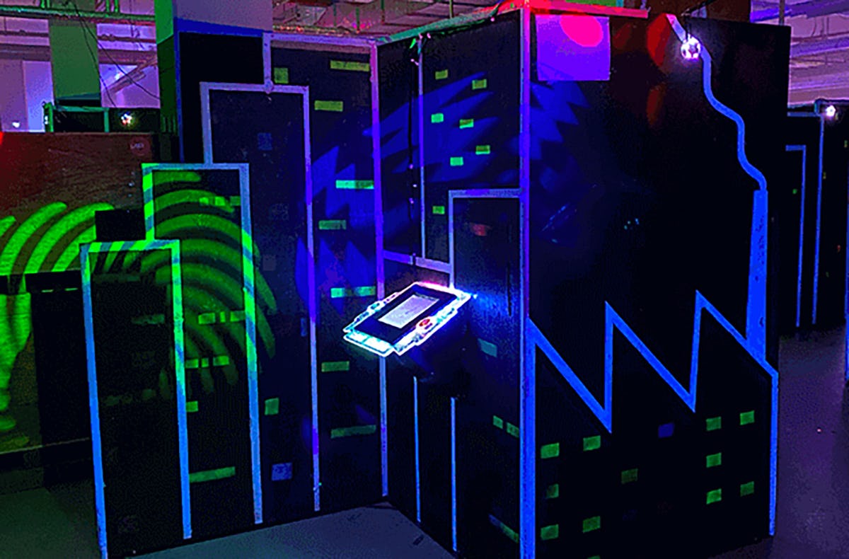 - Lasertag in moderner Arena mit verschiedenen Spielflächen und Spielelementen