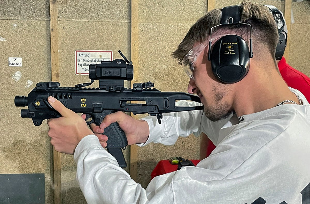 Du kommst am Schießstand in München an und betrachtest ehrfürchtig die unterschiedlichen Waffen. Dein fachkundiger Trainer unterweist Dich in die sicherere Handhabung und gibt Dir eine erste Anleitung. Im nächsten Schritt kannst Du dann auch schon unter professioneller Aufsicht mit sportlich genutzten Klein- und Großkaliberwaffen auf die Zielscheiben feuern! Unter dem Motto Sicherheit, Professionalität, Verantwortung und Zuverlässigkeit findet Dein Schnupperkurs statt und führt Dich gekonnt in den richtigen Umgang mit Waffen ein.… und Schuss!