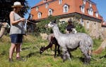 Kaum seid Ihr am Alpakahof angekommen, seht Ihr schon die quirlige Alpaka - Herde. Die neugierigen Tiere kommen auf Euch zu. Ihr streichelt das weiche, flauschige Fell der Mini-Kamele. Dabei schauen Euch ihre niedlichen Kulleraugen an. Schon bekommt Ihr jeweils ein Alpaka zugeteilt und die Wanderung beginnt.Inmitten der Natur