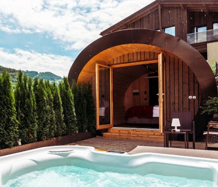 - Alleinnutzung (keine anderen Gäste) des sichtgeschützten, abschließbaren Wellnessbereichs (mit Bubble)
