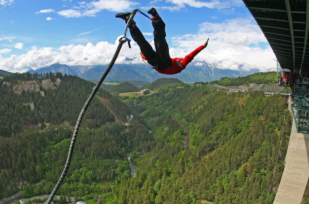 Viel mehr Bungy geht nicht! Beim Bungy Jumping von der Europabrücke bei Innsbruck erwarten Dich gleich mehrere Superlative: Du wagst den höchsten Brücken-Bungy-Sprung in Europa und zugleich einen der Top-5-Jumps weltweit! Bereit für einen unvergesslichen Adrenalinkick?