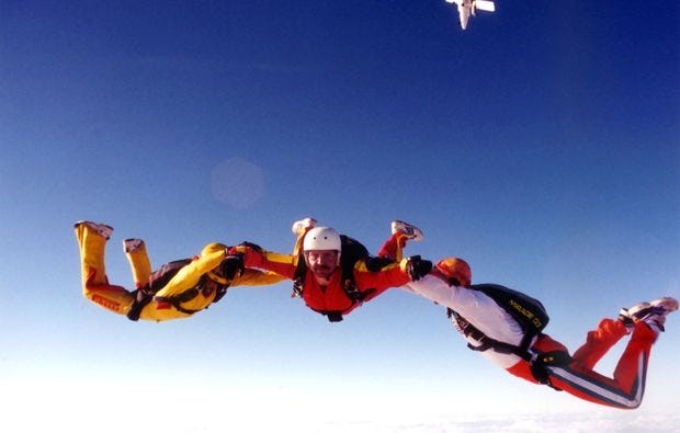 Nach einer kurzen Einweisung geht es in die Luft. In 4.000 Metern Höhe öffnet sich die Flugzeugtür und Du springst zusammen mit einem erfahrenen Tandemmaster. Spüre die sanfte Brise und genieße den Moment, wenn Du sicher und sanft zurück zur Erde gleitest.