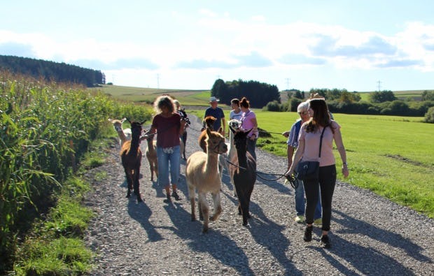 Bei der Wanderung habt Ihr die Möglichkeit, Euer eigenes Alpaka genauer kennenzulernen und auf Kuschelkurs zu gehen. Dabei dürft Ihr selbst die Alpakas durch die Landschaft führen. Gemeinsam wandert Ihr, mit den anderen Gruppenmitgliedern, über die grünen Wiesen- und Feldwege Brigachtals, in der Nähe des Bodensees. Genießt zusammen die frische Luft und ruhige Natur, fernab des Stadtlärms.Das ganze Jahr über verfügbar