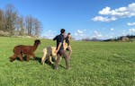 Die Umgebung ist traumhaft schön und auch den Alpakas scheint es zu gefallen. Die aufgeweckte Dominica läuft mit lustigen Bocksprüngen voraus und ist sich gleichzeitig Ihrer Schönheit bewusst – eine wahre Diva. Berti, der beige Wanderbursche, der Truppe folgt Euch und genießt den Ausgang genauso sehr wie Ihr. Euer Guide versorgt Euch gleichzeitig mit interessanten Infos über die Tiere und anschließend schaut Ihr noch für einen Abstecher im Hofladen vorbei.Überrasche Deinen Lieblingsmensch mit diesem besonderen Spaziergang und schließt bei der Alpaka Wanderung in Furth neue Freundschaften mit den Fellnasen.