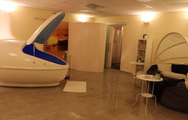 Zum Vorgespräch wirst Du mit einem bekömmlichen Wellnessgetränk Deiner Wahl begrüßt. Damit Du Dich richtig wohlfühlen kannst, erwarten Dich Räumlichkeiten voller positiver Schwingungen. Es stehen sowohl Handtücher als auch kuschelige Bademäntel zur Verfügung. Nach einer erfrischenden Dusche beginnt Dein Wellnesserlebnis: Floating im Tank. Du schwebst bei konstanten und wohltuenden 34,8 Grad im Becken mit Salzwasser. Es erwartet Dich ein Zustand, der erholender als ein Schlaf ist. Von Dir ausgewählte Musik ist leise im Hintergrund wahrzunehmen und bringt Dich immer weiter in eine Welt voller Entspannung. Die Schwerelosigkeit ist mehr als faszinierend. Du erkundest Dein Bewusstsein auf eine ganz neue Art und Weise. Neben dem schwerelosen Gefühl, aktiviert das Floating den Stoffwechsel, reduziert das Stresslevel, lindert Schmerzen und wirkt positiv auf Hauterkrankungen ein. Floating verspricht somit eine einmalige Kombination aus Erholung, Regeneration und Heilung.