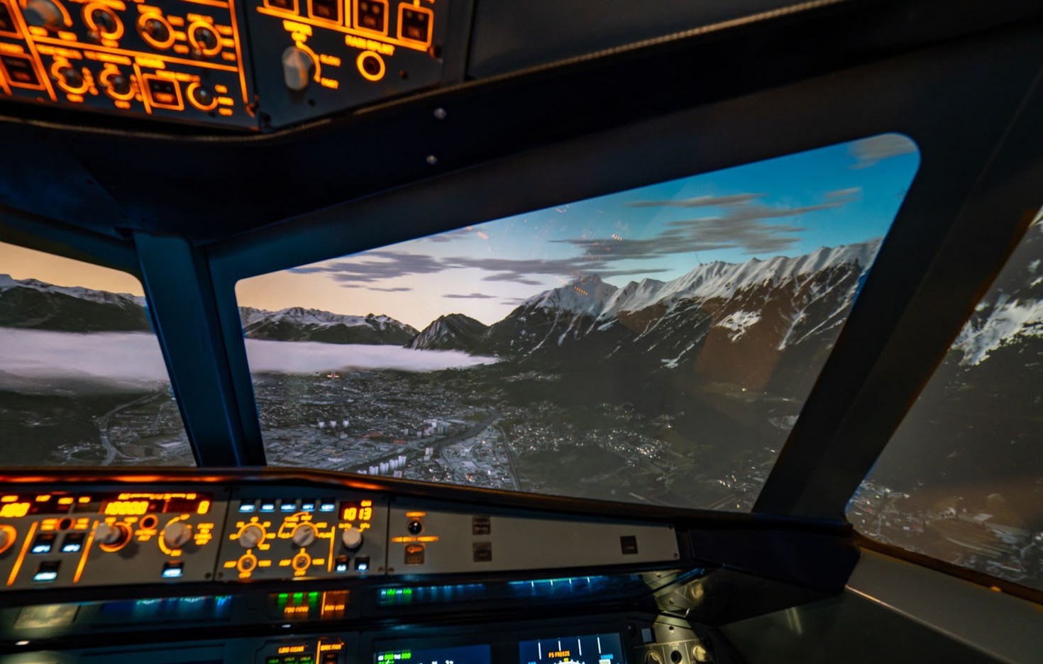 - Ca. 60-minütiges Fliegen in einem Fixed-Base Cockpit-Simulator vom Typ Airbus A320 (60 Minuten Cockpitzeit garantiert)
