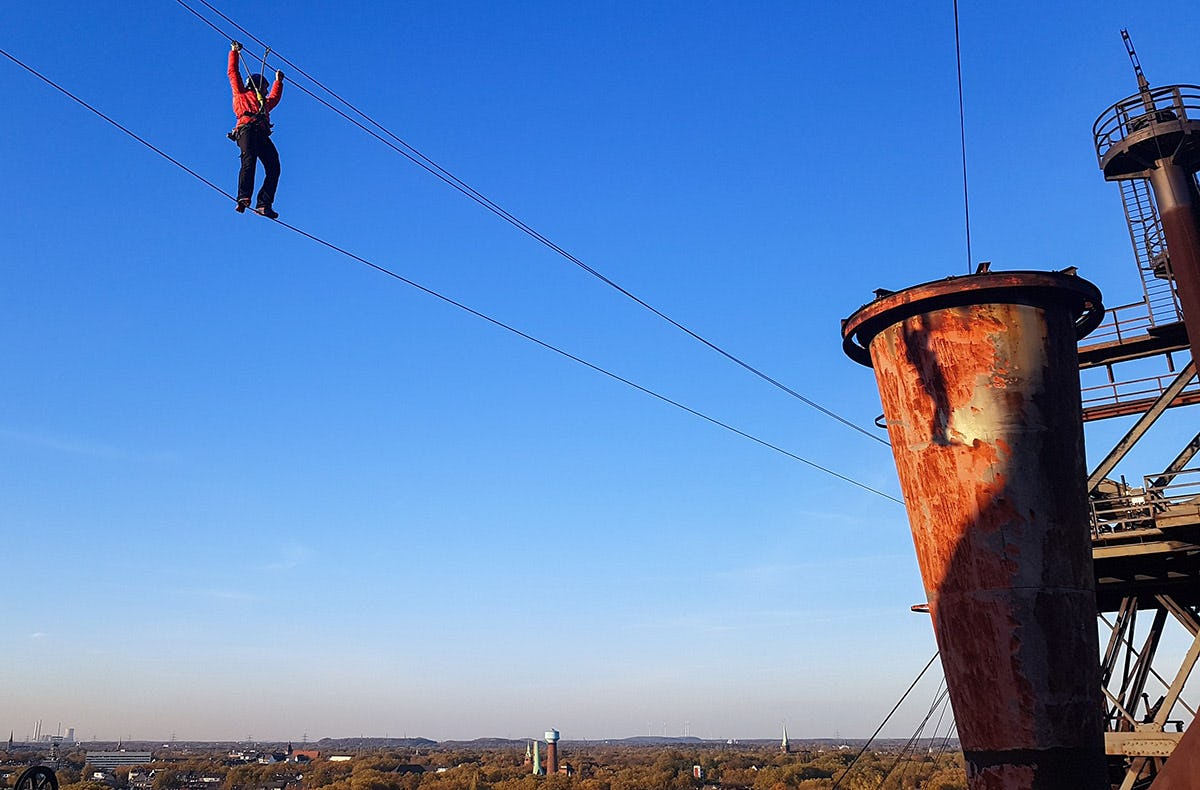 Wenn Du also auf eine gehörige Portion Nervenkitzel stehst und Deine eigenen Grenzen und Fähigkeiten in einzigartiger Atmosphäre austesten möchtest, dann bist Du hier genau an der richtigen Adresse. Lerne Dich selbst kennen und tauche ein in die Industriegeschichte des Ruhrgebiets.