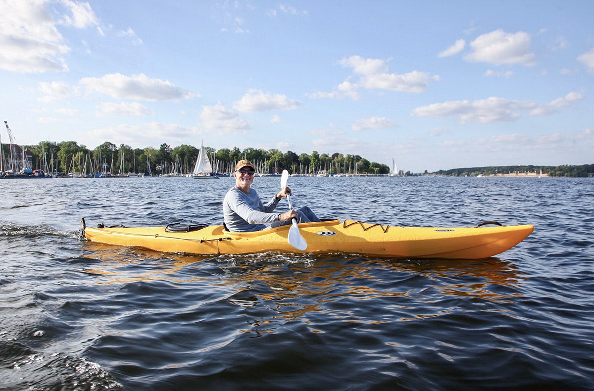 Ob Anfänger oder Profi – mit den kippstabilen Kajaks paddelst Du sicher über das Wasser. Dank einer Steueranlage lenkst Du das Boot zusätzlich zum Paddeln auch mit den Füßen gekonnt in die richtige Richtung. Einfach Schwimmweste anziehen, im Kajak Platz nehmen und eine entspannte Tour auf dem Wannsee starten.Du möchtest einem lieben Menschen Entschleunigung vom Alltag schenken? Dann überrasche ihn oder sie mit Kajak fahren in Berlin.