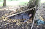 Nach einem anstrengenden Tag lässt Du den Abend am Lagerfeuer gemütlich ausklingen und machst es Dir unter freiem Himmel in Deiner Notunterkunft bequem.