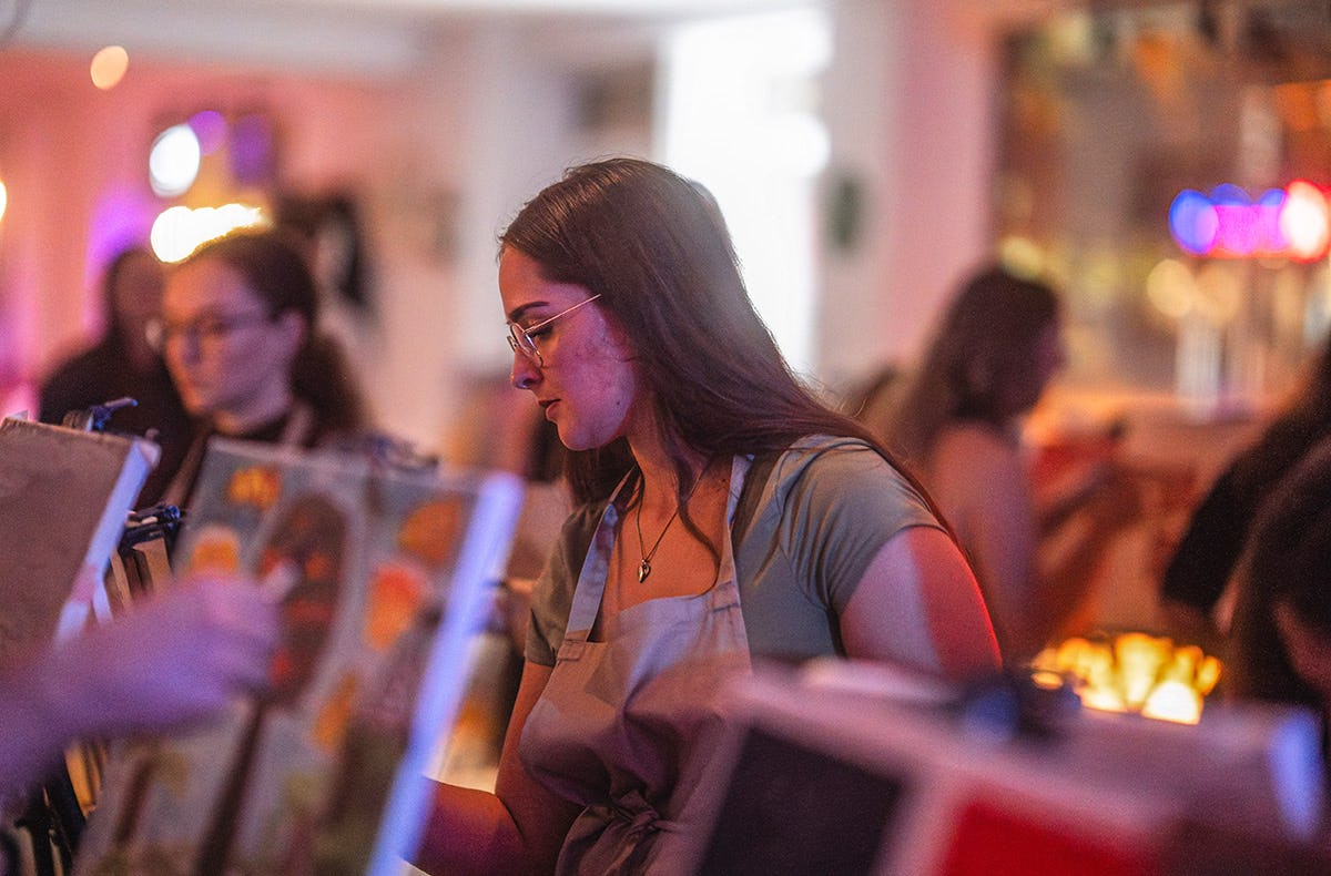 Ein kreatives Erlebnis in Frankfurt wartet darauf, Deine Sinne zu berühren: Bei Techno and Paint entsteht Kunst in einer Atmosphäre aus sanften Basslinien und harmonischem Licht. Während Dich entspannte Techno-Klänge begleiten, gestaltest Du Schritt für Schritt Dein persönliches Kunstwerk auf Leinwand – angeleitet von einem erfahrenen Kursleiter. Mit Acrylfarben und dem bereitgestellten Mal-Equipment eröffnen sich Dir neue Ausdrucksmöglichkeiten. Eine fachkundige Verkostung von vier sorgfältig ausgewählten Weinen – auch alkoholfrei möglich – ergänzt das sinnliche Erlebnis. Jeder Pinselstrich ist ein kleiner Moment der Ruhe und kreativen Selbstentfaltung. Am Ende nimmst Du Dein einzigartiges Werk mit nach Hause – eine ganz persönliche Erinnerung an einen stilvollen Abend voller Farbe und Klang. Lass Dich inspirieren und werde Teil dieses besonderen Zusammenspiels aus Kunst und Musik.