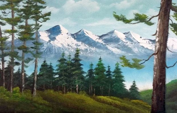 - Malen eines großen Ölbildes nach der Bob Ross ® -Technik