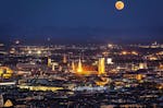 Der düstere Blick auf die Stadt mit Nachtführungen