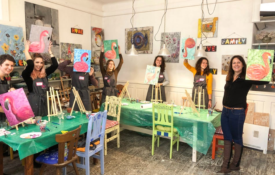 Der perfekte Ort, um gemeinsam kreativ zu werden. Du benötigst keine Vorkenntnisse, denn Du wirst von professionellen Künstlern betreut. Am Anfang gibt es eine Einführung mit wichtigem Briefing. Dann erlernst Du die Kunst der Malerei – vom Beginn der Skizze bis hin zum fertigen Motiv.Lass Deiner Kreativität freien Lauf und schwing den Pinsel. Deine fertige Meisterleistung darfst Du am Ende mit nach Hause nehmen. Sie erinnert Dich an eine unvergessliche Zeit in Wien.