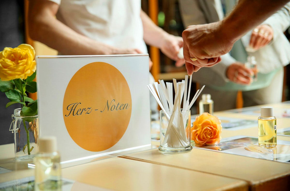 Beim Parfüm selber machen in Essen dreht sich alles um Gerüche. Deshalb wirst Du auch mit Informationen rund um den Geruchssinn sowie die Geschichte, Herstellung und Gewinnung von Düften versorgt. Ganz nebenbei verschaffst Du Dir einen Überblick über Marken-Trends und tauchst ganz tief ein ins Duftuniversum. Das Highlight des Kurses ist und bleibt jedoch die Herstellung Deines eigenen Parfüms. Stolz nimmst Du Deine Eigenkreation samt individuellem Label mit Heim. Dieser Duft ist wirklich etwas Besonderes!