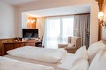 - Kostenfreie Nutzung des 1000 qm großen Wellnessbereichs inkl. finnischer Sauna, Zirben-Sanarium, Infrarotsauna, Kräutersauna, Kneippbecken, Ruheraum, Indoor-Pool, Outdoor-Pool (Mai bis September), sowie Teilnahme an Kursprogrammen