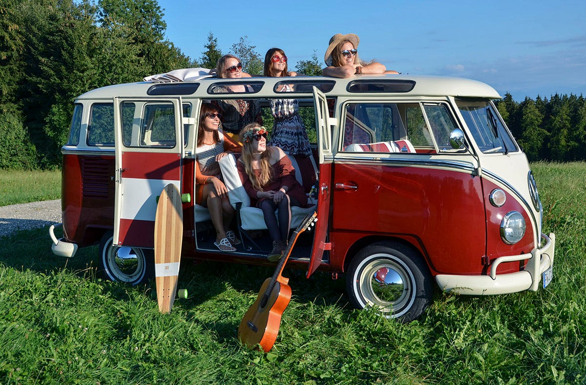 Der Retro-Bus ist ein wahrer Hingucker auf der Straße! Seit seiner ersten Produktion im Jahr 1950 fasziniert der einzigartige Bulli bis heute Sammler und Auto-Liebhaber gleichermaßen. Die auffälligen Farben und die charmante Form zaubern jedem ein Lächeln ins Gesicht. Genießt gemeinsam in dem Reisemobil die ausgelassene Atmosphäre und die atemberaubende Aussicht auf die Region am Bodensee.