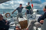Am 21m hohen Mast sorgen, je nach Wind- und Wetterverhältnissen, ein 60qm Großsegel, eine 75qm Genua oder eine 55qm Arbeitsfock für feinstes Segel-Vergnügen. Bei leichten Winden, aus der passenden Richtung, setzt der Veranstalter auch gerne sein "Buntes Tuch", den 180qm Blister !